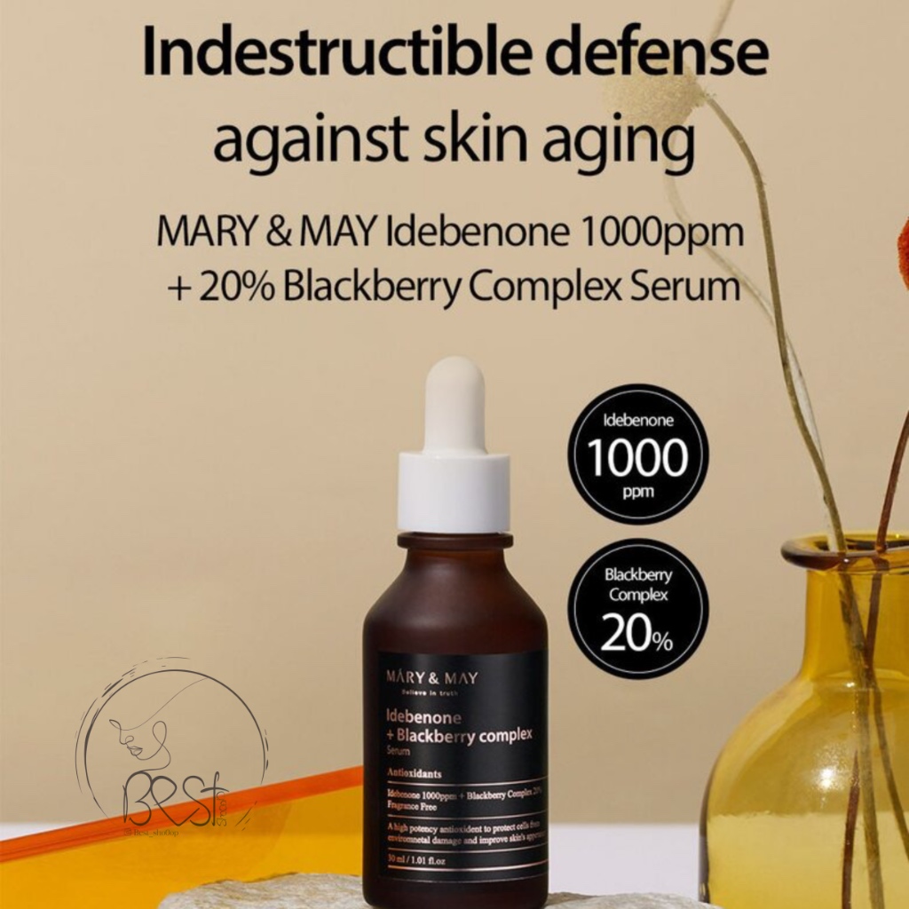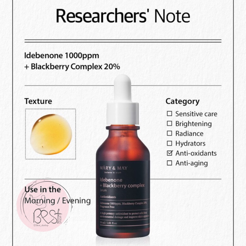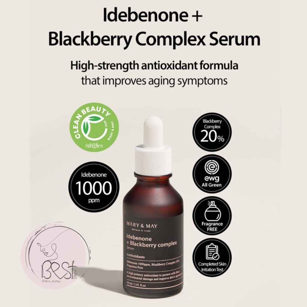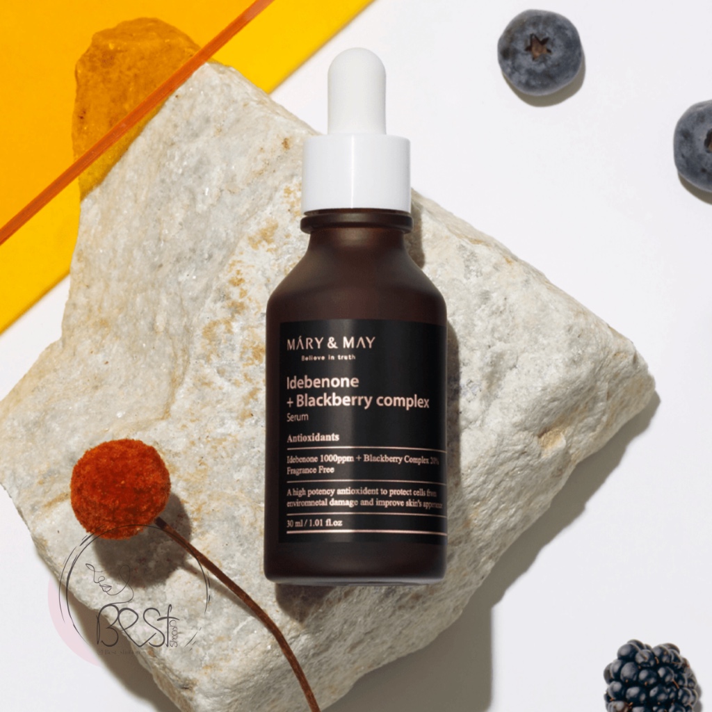 🙋🏻‍♀️ Idebenone از لحاظ قدرت آنتی‌اکسیدانی ۴ برابر ویتامین C و ۱۰ برابر کوآنزیم Q10 می‌باشد. 🙋🏻‍♀️ Blackberry سرشار از آنتی‌اکسیدان، anthocyanins و ویتامین C است و می‌تونه اکسیژن فعال رو از بین ببره و از پیری پوست جلوگیری کنه.
