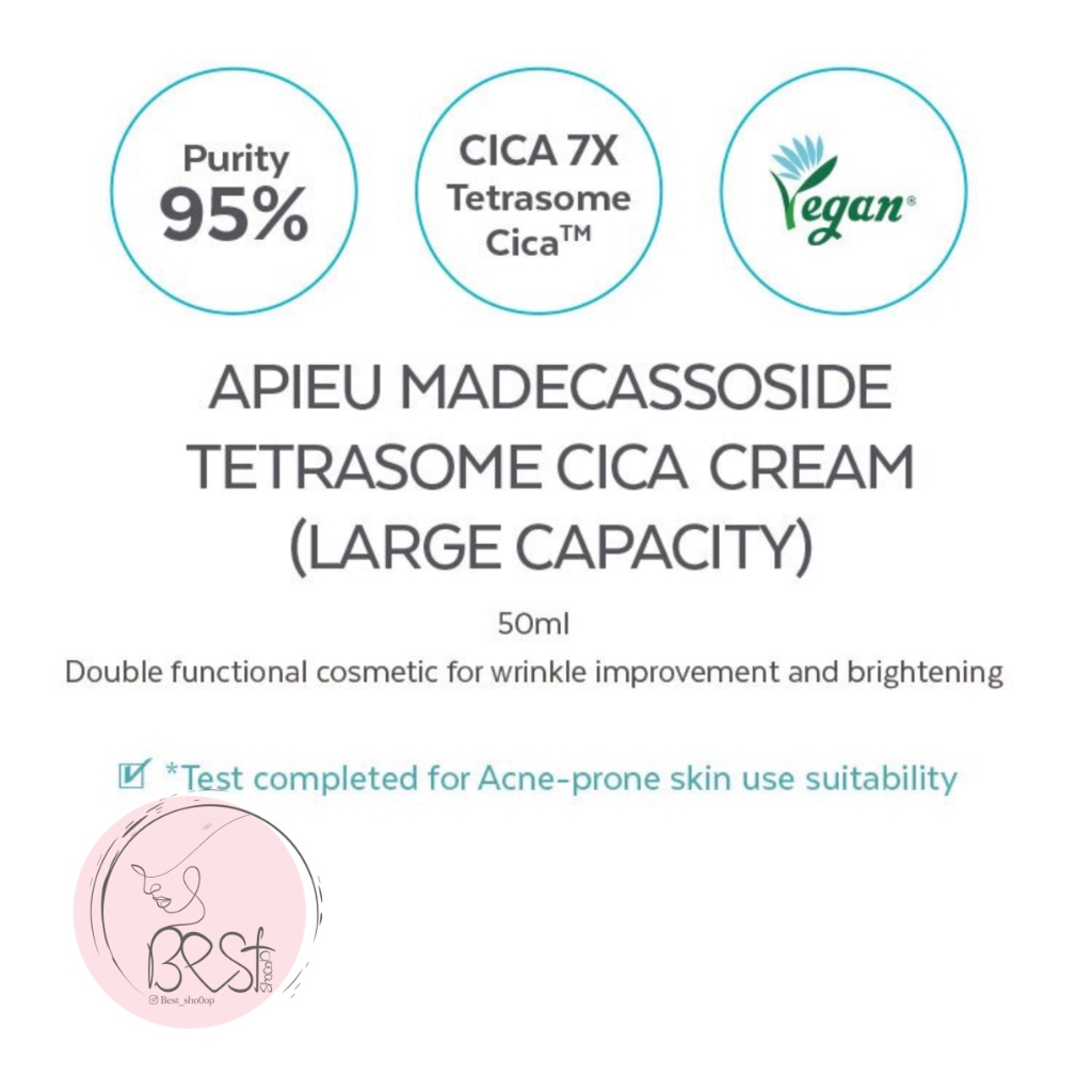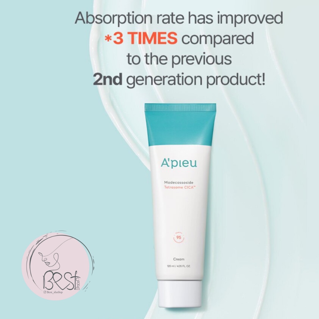 Apieu – Madecassoside Tetrasome CICA Cream 120mL ▪️آبرسان، التیامبخش قدرتمند، ترمیم و تقویت سددفاعی پوست، خنککننده، جوانساز، روشنکننده پوست، کنترل کننده ترشح سبوم، کمک به التیام و درمان پوستهای مستعد آکنه و …