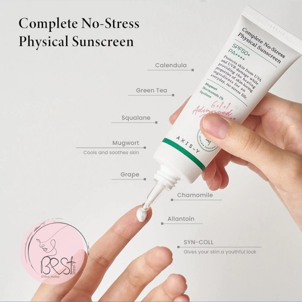 [AXIS-Y] Complete No-Stress Physical Sunscreen SPF50+ PA++++ 🙋🏻♀️ با استفاده از تکنولوژی SYN-COLL تولید کلاژن در پوست را افزایش میدهد، در اصل این تکنولوژی روند تولید کلاژن در پوست را تقلید و اجرا میکند 🐌✨