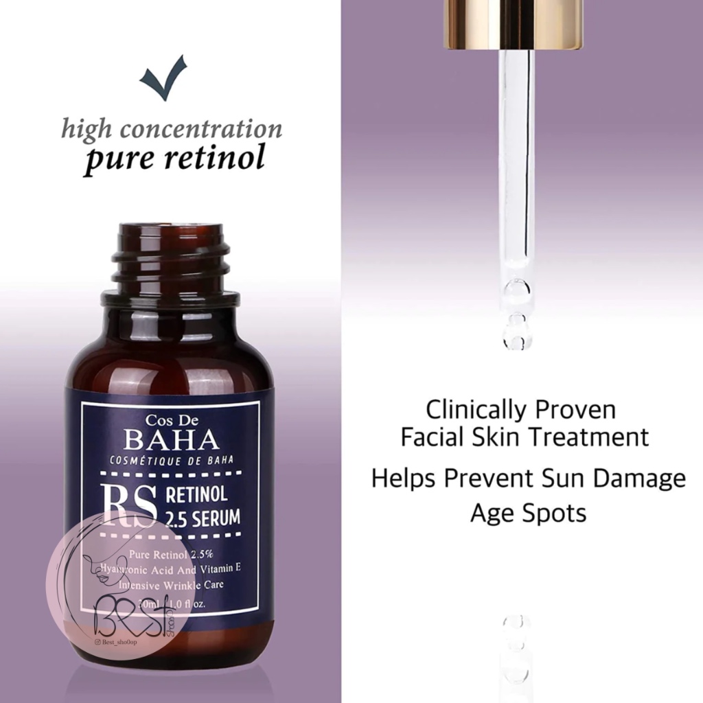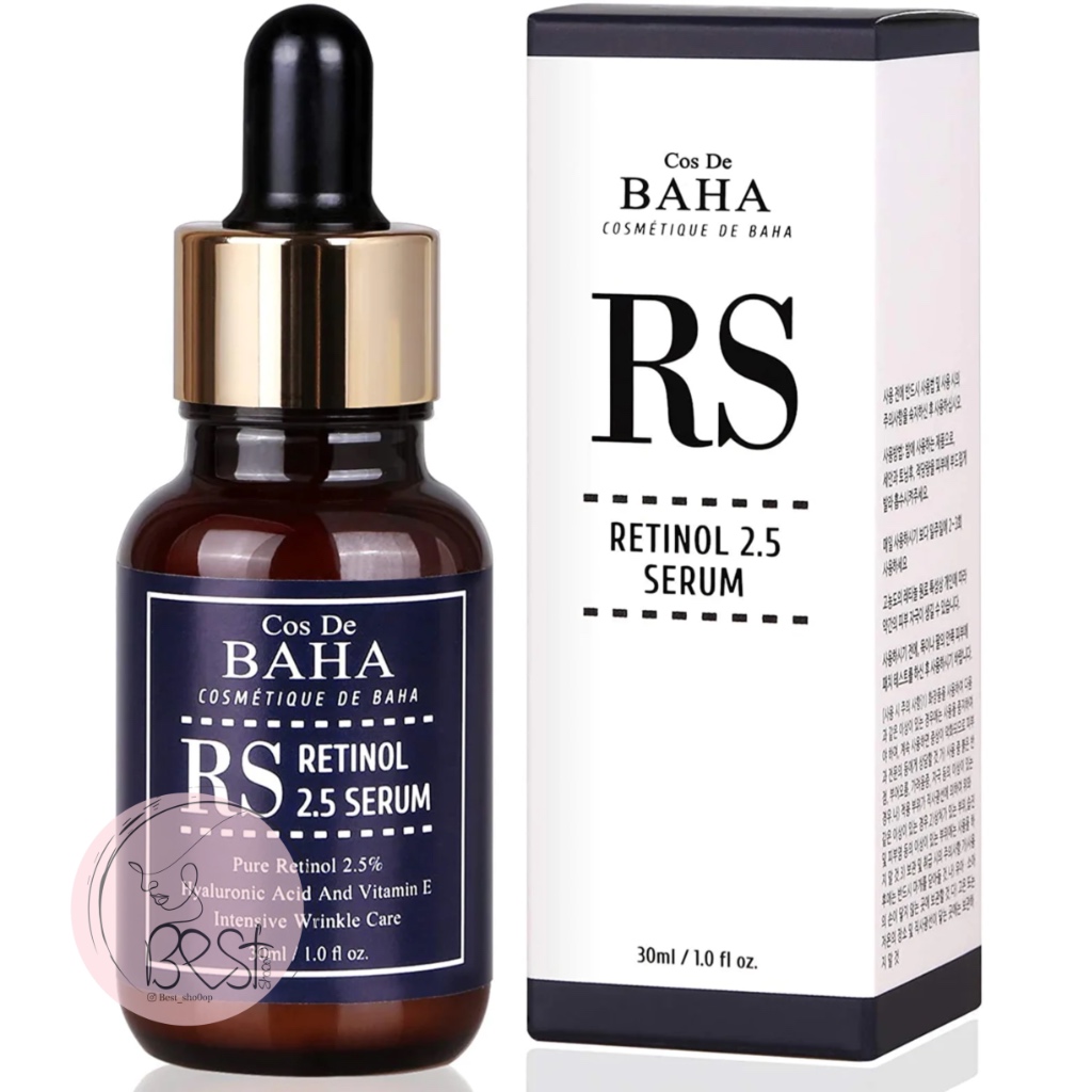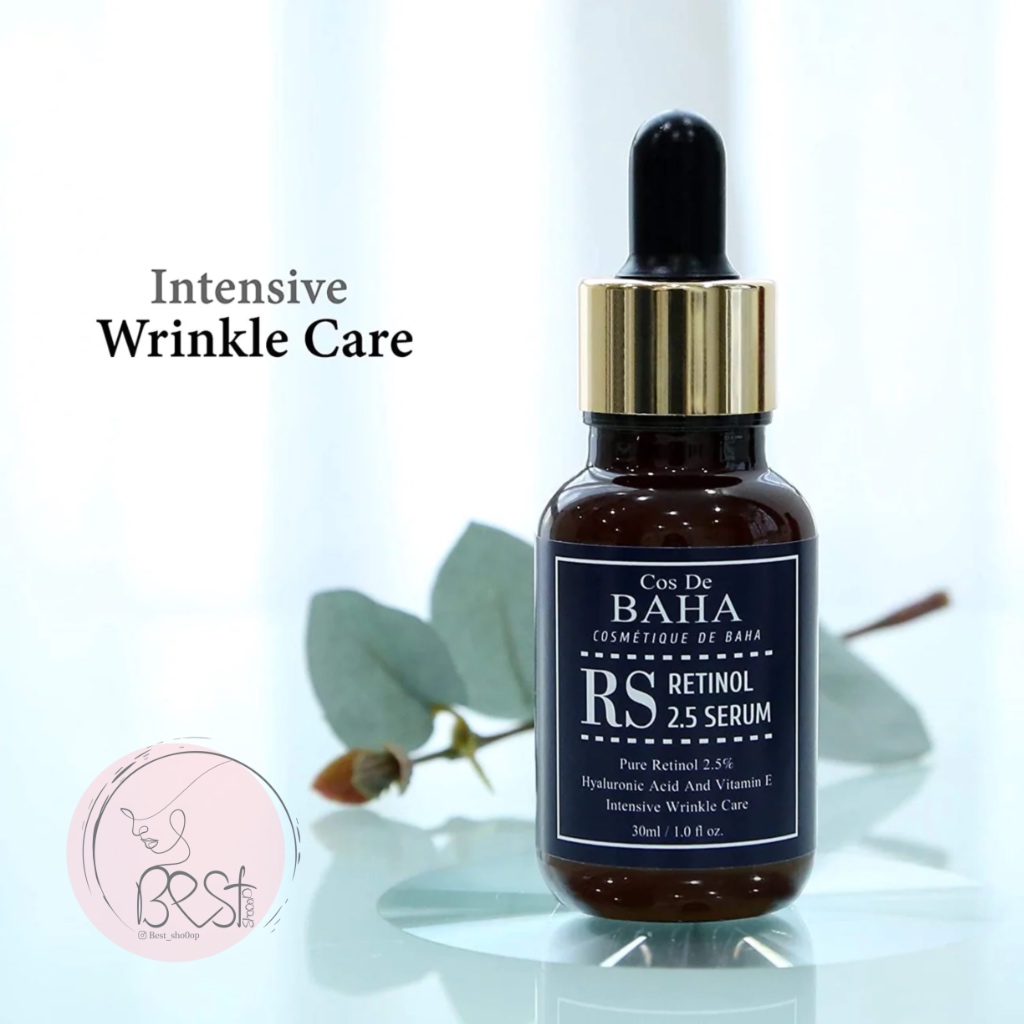 Cos de BAHA Retinol 2.5% (RS) Facial Serum with Vitamin E, 30ml ▪️ دارای ۲.۵ درصد خالصترین فرم ویتامین A ( رتینول ) ✨ بسیار مؤثر ✨