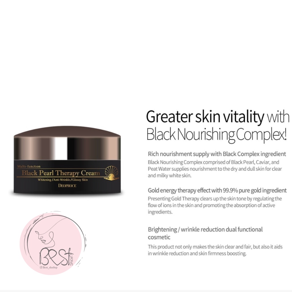 Deoproce Black Pearl Therapy Cream▪️رنگ سیاه این محصول بخاطر مواداولیه میباشد و هیچگونه رنگ صنعتی استفاده نشده است .