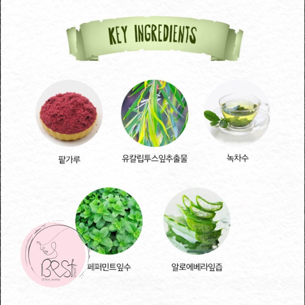 1. Kaoline, Bentonite, Clear Green Clay( پاکسازی عمقی منافذ از آلودگی و سبوم، پاکسازی سطح پوست از آلودگی، جاذب سبوم، کوچککننده منافذ، ماتکننده پوست، لایهبرداری ملایم پوست، روشنکننده پوست، ضدجوش، کنترلکننده ترشح سبوم )