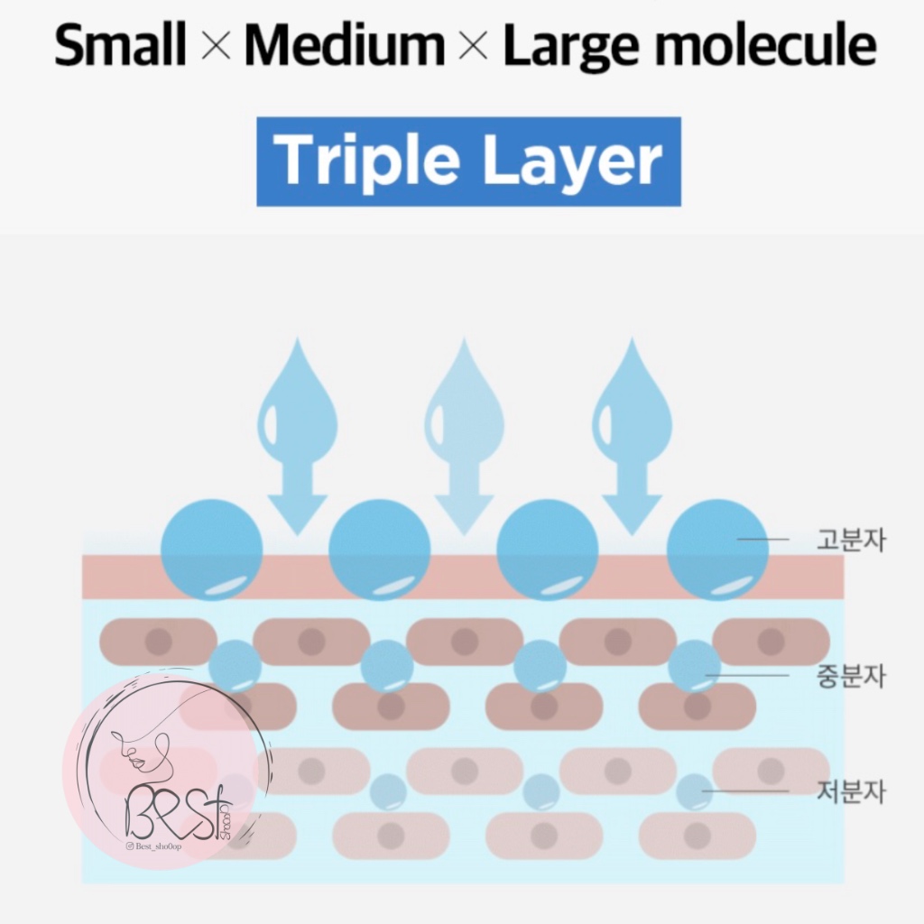 ▪️ دارای ۱۰ نوع هیالورونیک اسید با ۳ سایز مولکولی برای نفوذ به لایه‌های مختلف پوست جهت افزایش سطح رطوبت پوست💧
