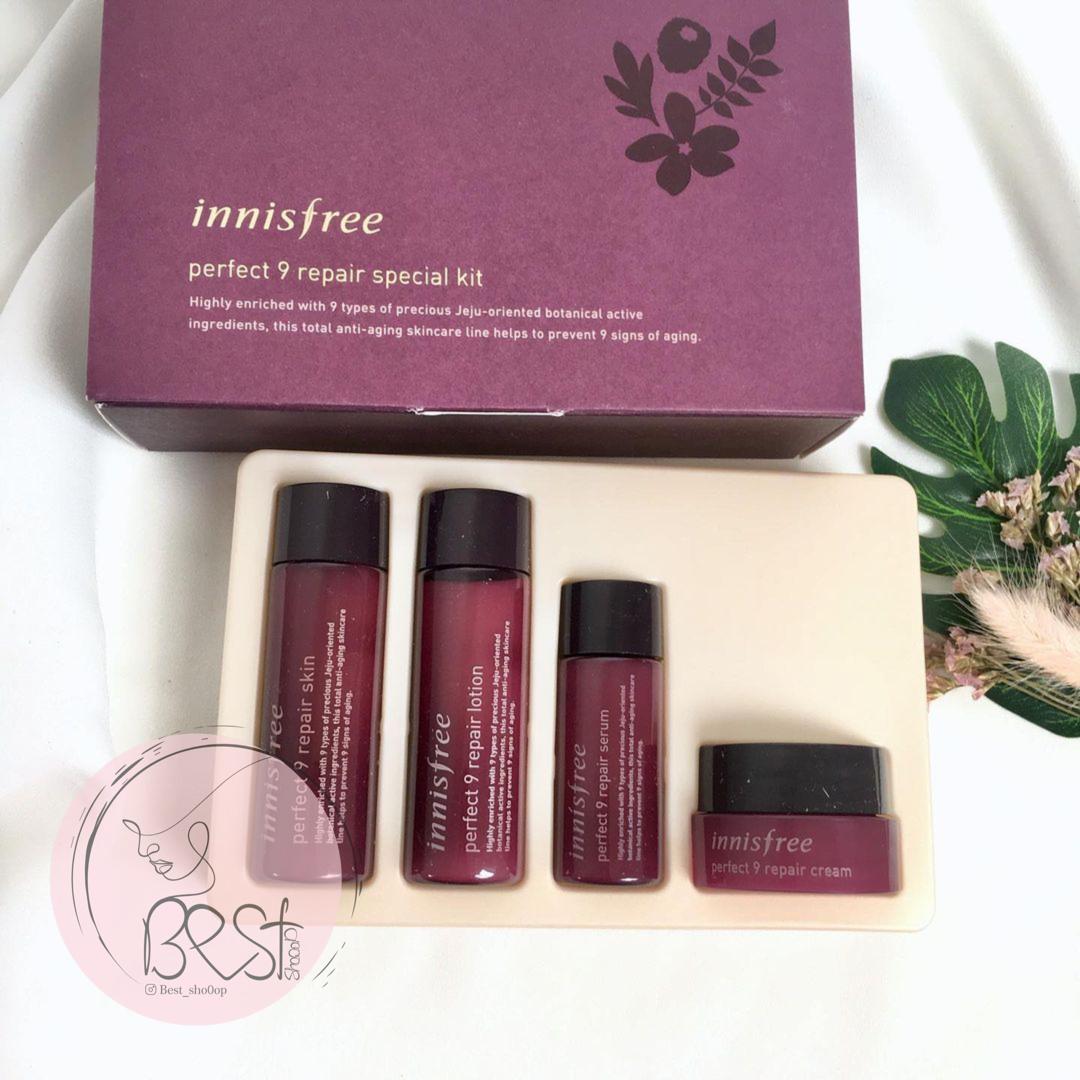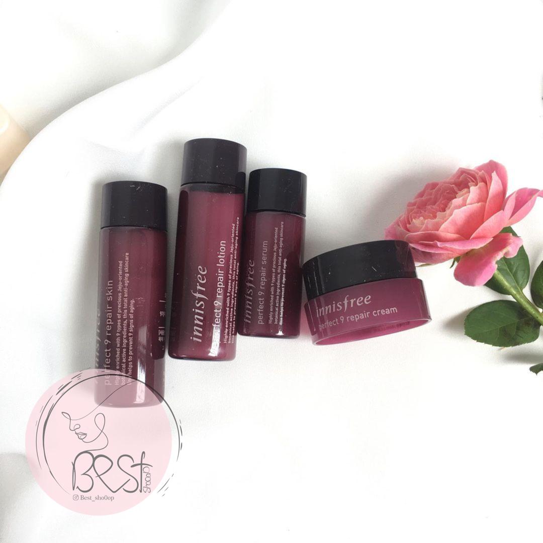 کیت ضد چروک و آبرسان۴ تایی برند اینیسفری ?دارای ۹ ماده ضد چروک و انرژی بخش پوست INNISFREE Perfect 9 Repair Special Kit (4 items: Perfect 9 Repair Skin EX, Perfect 9 Repair Lotion EX, Perfect 9 Repair Serum EX, Perfect 9 Repair Cream ‌ ? تونر ( ۲۵ میل ) 1. تنظیم کننده ph پوست 2. پاکسازی بقایای آلودگی از پوست 3. خاصیت ضد چروک به وسیله ۹ ماده مؤثر جزیره ججو 4. روشن کننده پوست 5. کوچک کننده منافذ 6. آبرسانی ( برطرف کننده بی آبی بیش از حد پوست )و تغذیه پوست 7. افزایش کلاژن سازی و سفت کننده پوست 8. درمان جوش و جای جوش ?لوسیون ( ۲۵ میل ) 1. بسیار سبک با جذب بالا 2. ضدچروک قوی 3. تغذیه و آبرسانی پوست ?سرم ( ۱۵ میل ) 1. خاصیت ضد چروک به وسیله ۹ ماده مؤثر جزیره ججو 2. روشن کننده پوست 3. کوچک کننده منافذ 4. آبرسانی ( برطرف کننده بی آبی بیش از حد پوست )و تغذیه پوست 5. افزایش کلاژن سازی و سفت کننده پوست 6. درمان جوش و جای جوش ?کرم ( ۱۰ میل ) 1. خاصیت ضد چروک به وسیله ۹ ماده مؤثر جزیره ججو 2. ترمیم کننده پوست 3. روشن کننده پوست 4. کوچک کننده منافذ 5. آبرسانی ( برطرف کننده بی آبی بیش از حد پوست )و تغذیه پوست 6. افزایش کلاژن سازی و سفت کننده پوست 7. درمان جوش و جای جوش ‌ ?روش استفاده : 1. بعد از شستن صورت با شوینده مناسب مقداری از تونر را رو پد دیسکی بریزید و به آرامی روی پوست بکشید ، برای تاثیر بیشتر پد را روی پوست قرار دهید تا تونر بهتر جذب پوست شود. 2. بعد از تونر مقدار مناسبی از سرم را روی پوست بزنید و به آرامی روی پوست ماساژ دهید تا جذب شود 3. در این مرحله بعد از سرم از لوسیون و یا کرم استفاده کنید ، بهتر است صبح‌ها از لوسیون و شب‌ها از کرم استفاده کنید، به این صورت که مقداری از مواد را روی پوست به آرامی پخش کنید و با ضربه های پیانویی ملایم سر انگشتان به جذب بهتر مواد کمک کنید . ‌ ?مناسب انواع پوست بخصوص پوست‌های حساس ساخت کره جنوبی تاریخ انقضا:۲۰۲۳/۹