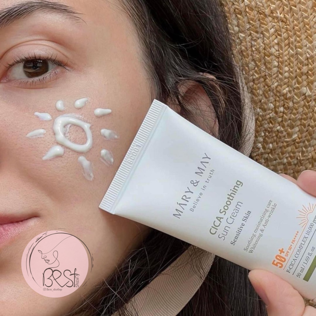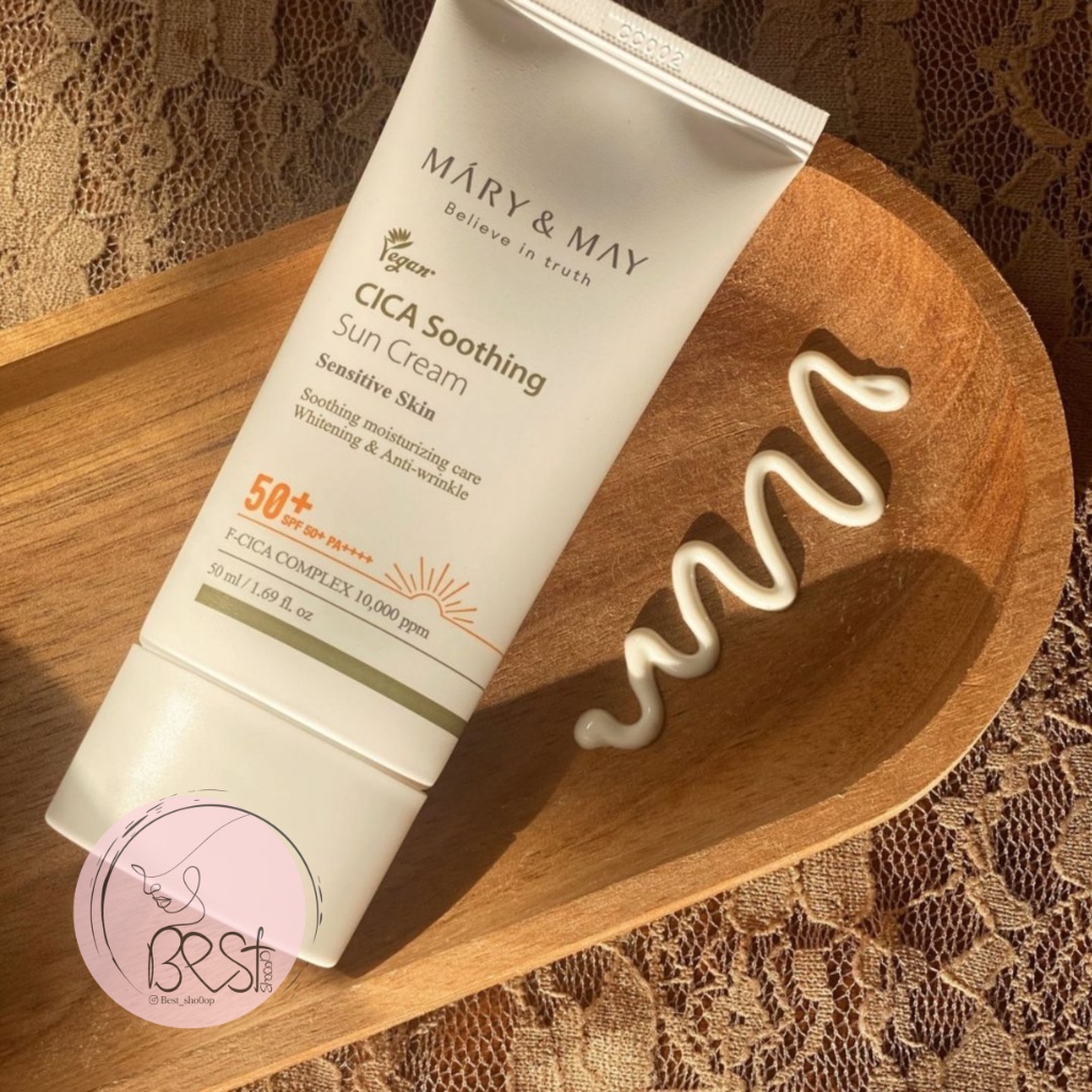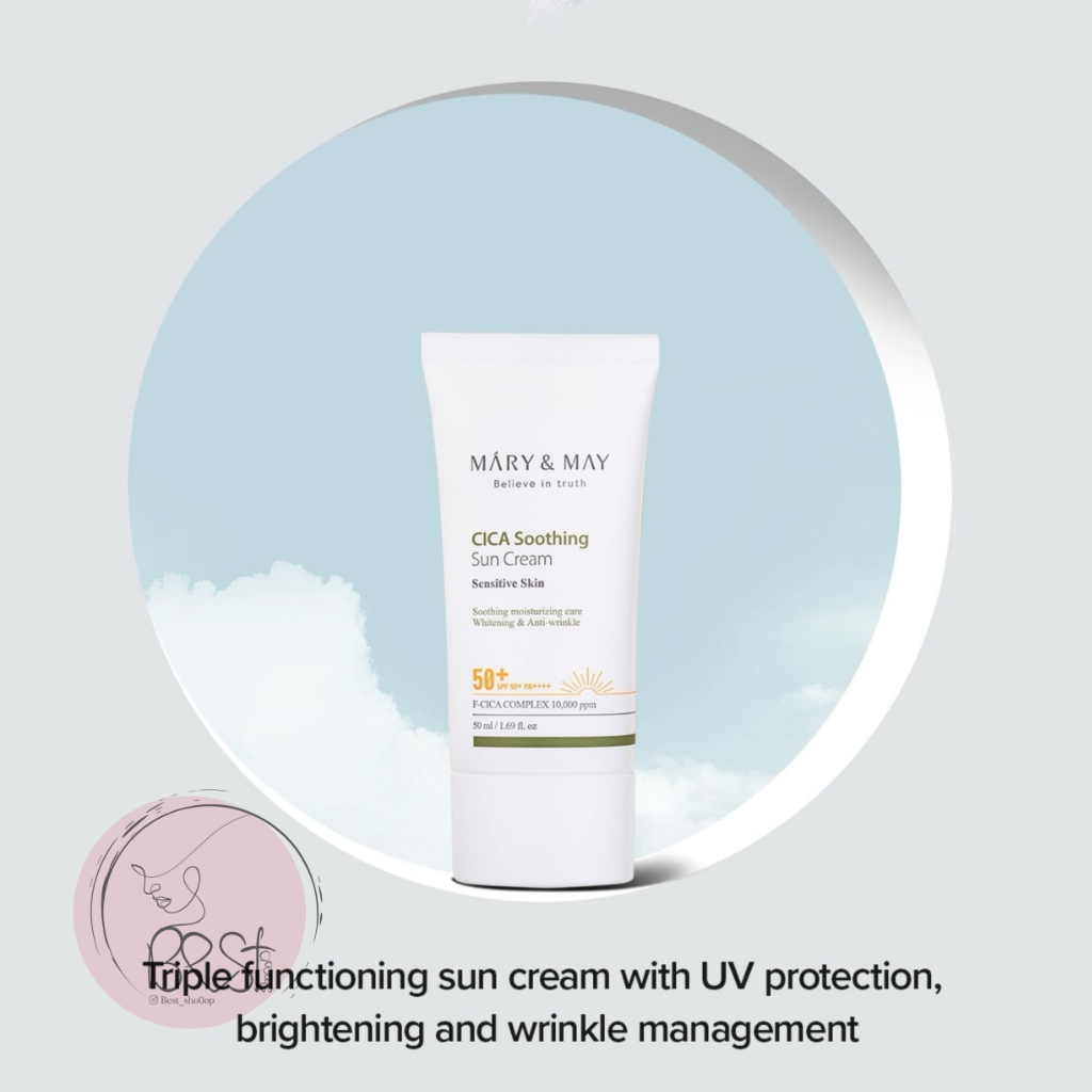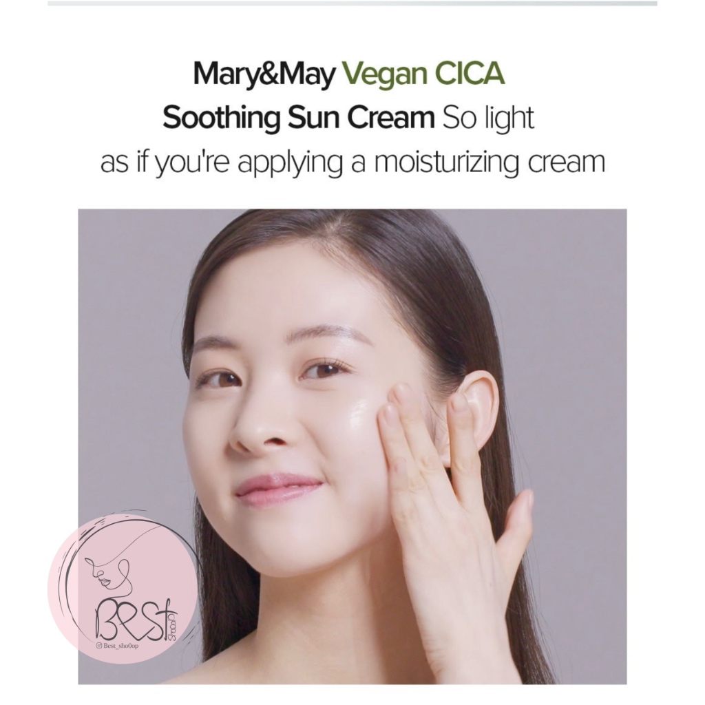 Mary & May CICA Soothing Sun Cream SPF50+ PA++++ 🙋🏻♀️ محصولی که علاوهبر آبرسانی، تغذیه، التیامبخشی، جوانسازی و روشنکنندگی پوست میتونه از پوست در برابر اشعه مضر نور خورشید محافظت کنه بدون اینکه حس چسبندگی، سنگینی و اثر سفیدی روی پوست داشته باشه ✨
