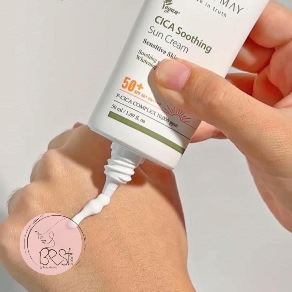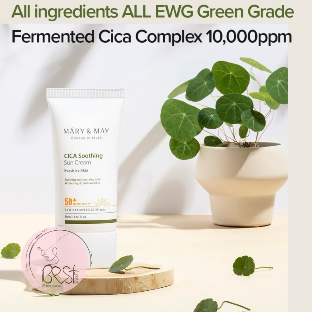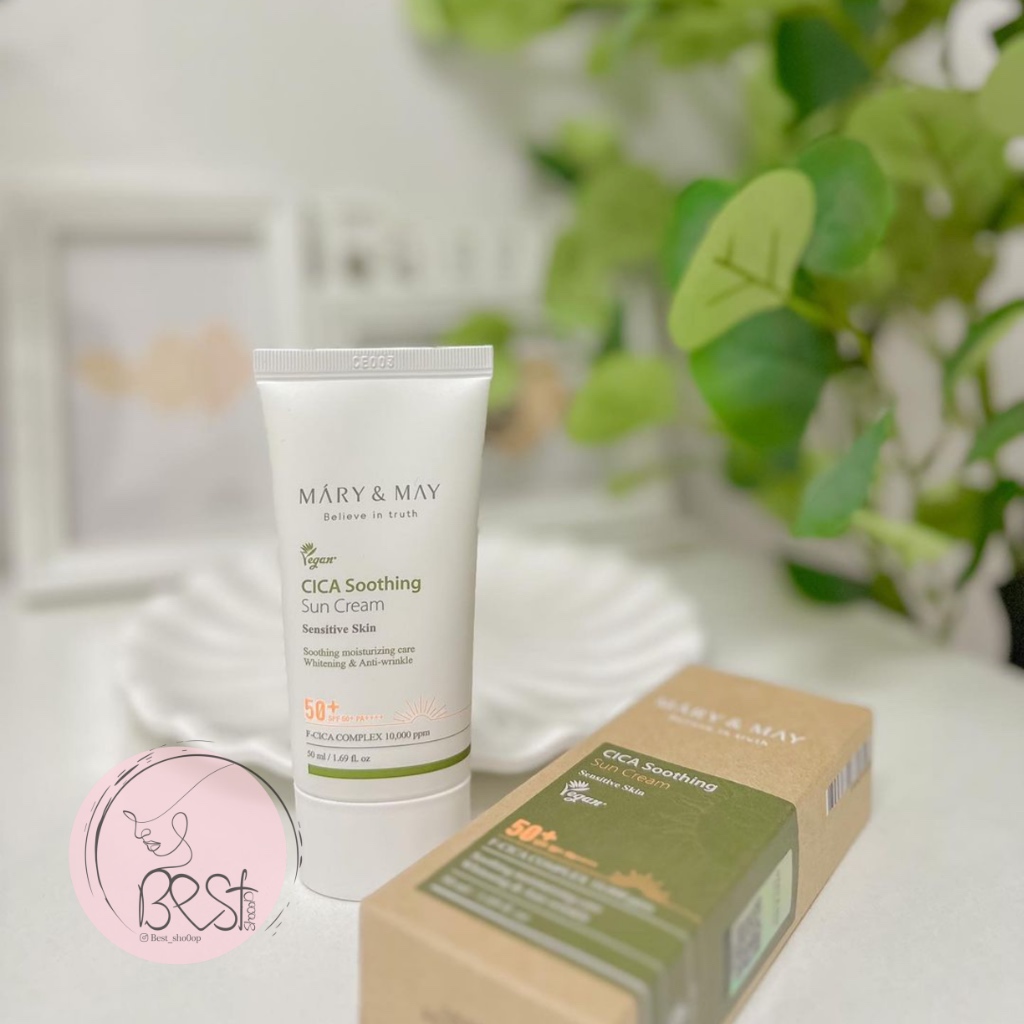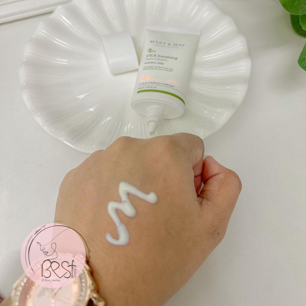 Mary & May CICA Soothing Sun Cream SPF50+ PA++++ 🙋🏻♀️ محصولی که علاوهبر آبرسانی، تغذیه، التیامبخشی، جوانسازی و روشنکنندگی پوست میتونه از پوست در برابر اشعه مضر نور خورشید محافظت کنه بدون اینکه حس چسبندگی، سنگینی و اثر سفیدی روی پوست داشته باشه ✨