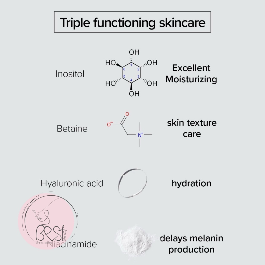 4. Niacinamide⁃ ( کنترلکننده ترشح سبوم، روشنکننده و یکنواختکننده رنگ پوست، تحریک پوست جهت تولید سرامید طبیعی، افزایش تولید کلاژن در پوست، ضدچروک، ضدجوش، ضدالتهاب، کاهش قرمزی پوست، بهبود بافت پوست، مراقبت از سددفاعی پوست، کمک به حفظ رطوبت موجود در پوست، مراقبت از پوست دربرابر عوامل استرسزا محیطی )