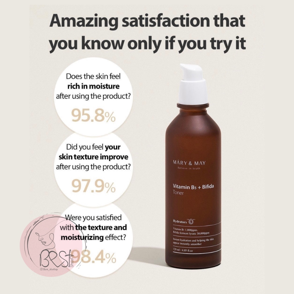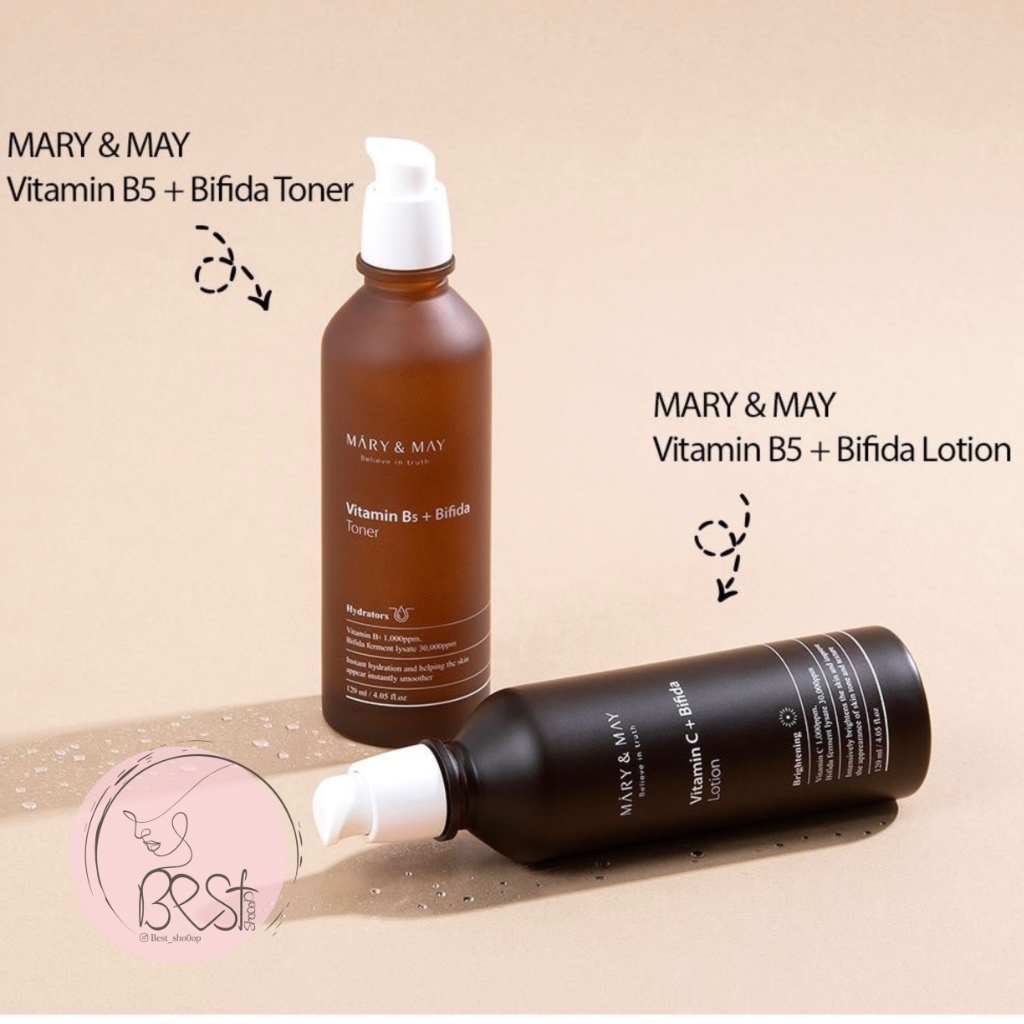 MARY & MAY – Vitamine B5 + Bifida Toner ▪️ تقویت سددفاعی پوست + تغذیه کننده پوست + افزایش سطح رطوبت پوست + التیامبخش پوست + بهبود حالت ارتجاعی پوست + روشنکننده و شفافکننده پوست+ افزایش لطافت پوست + … ❤️