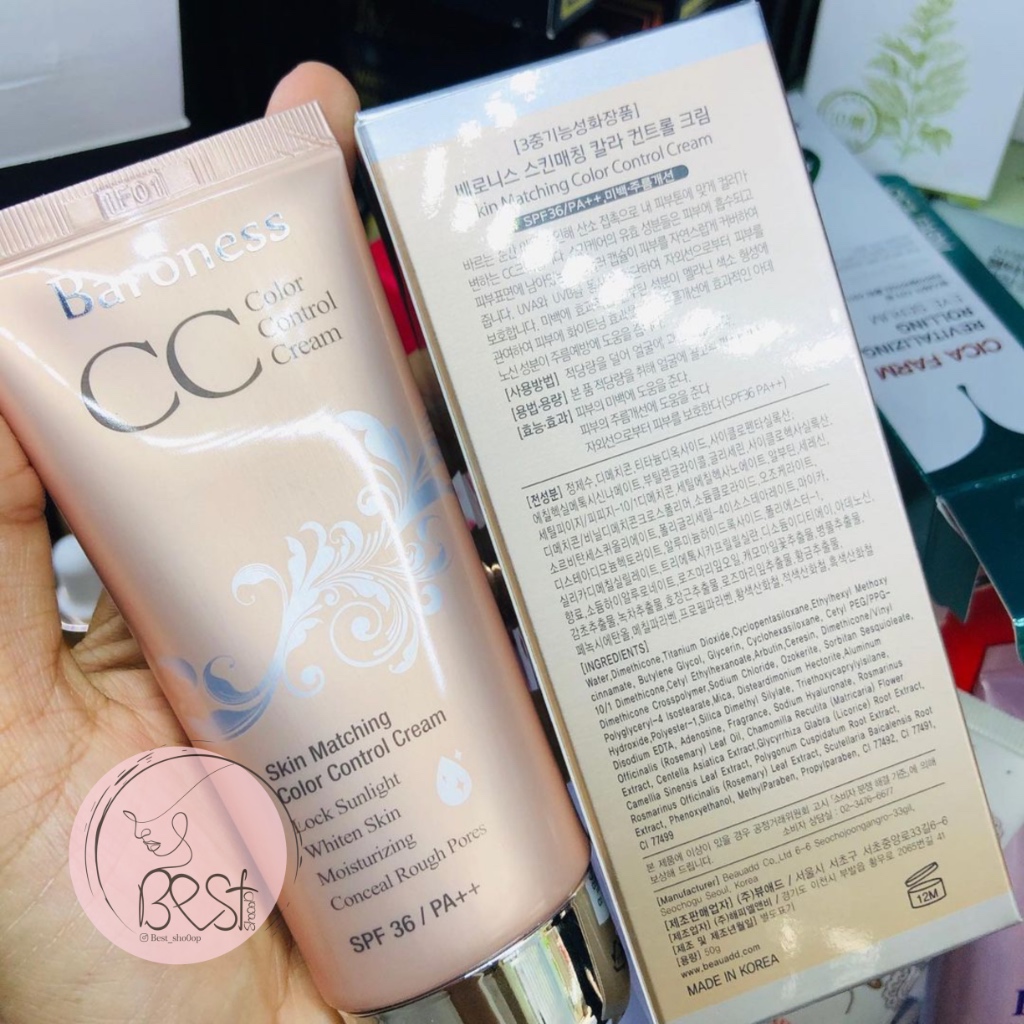 Moisturizing CC face cream Baroness Skin Matching Color Control Cream 50 ml ▪️دارای آربوتین، ادنوزین، هیالورونیکاسید، روغن رزماری و …✨