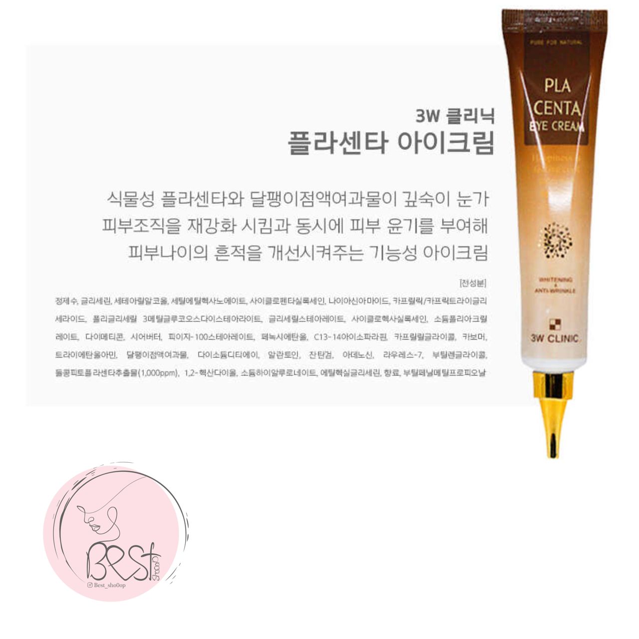 3W Clinic – Placenta Eye Cream 40ml ◽️محصولی درمانی و مراقبتی برای مشکلات عمده پوست اطراف چشم ?