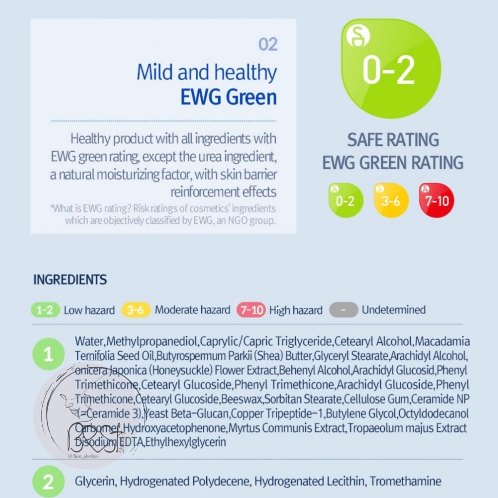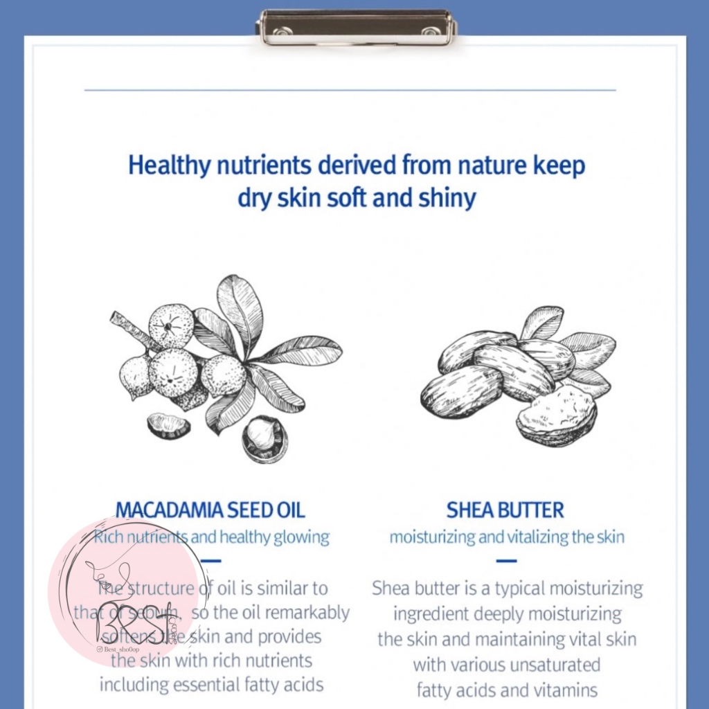 ساخت کره جنوبی تاریخ انقضا:۲۰۲۴/۱۱ ۱۲۰ میل می باشد Ingredients : Water, Glycerin, Butylene Glycol, Caprylic/Capric Triglyceride, Cetearyl Alcohol, Macadamia Ternifolia Seed Oil, Hydrogenated Polydecene, Butyrospermum Parkii (Shea) Butter, Glyceryl Stearate, Lonicera Japonica (Honeysuckle) Flower Extract, Arachidyl Alcohol, Behenyl Alcohol, Arachidyl Glucoside, Phenyl Trimethicone, Cetearyl Glucoside, Beeswax, Sorbitan Stearate, Cellulose Gum, Ceramide NP (Ceramide 3), Yeast Beta-glucan, Copper Tripeptide-1, Butylene Glycol, Hydrogenated Lecithin, Octyldodecanol, Carbomer, Hydroxyacetophenone, Myrtus Communis Extract, Tropaeolum Majus Extract, Tromethamine, Disodium EDTA, Ethylhexylglycerin| برند |
