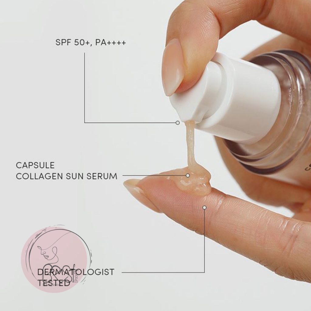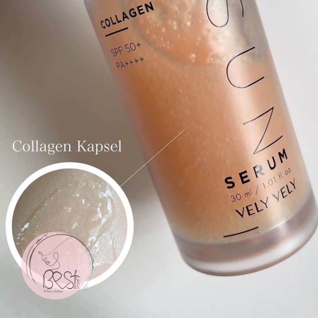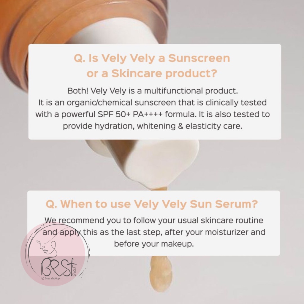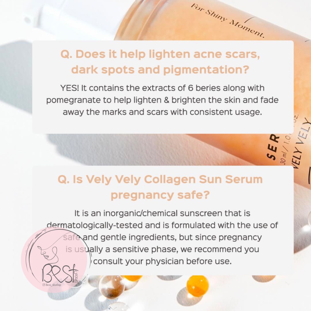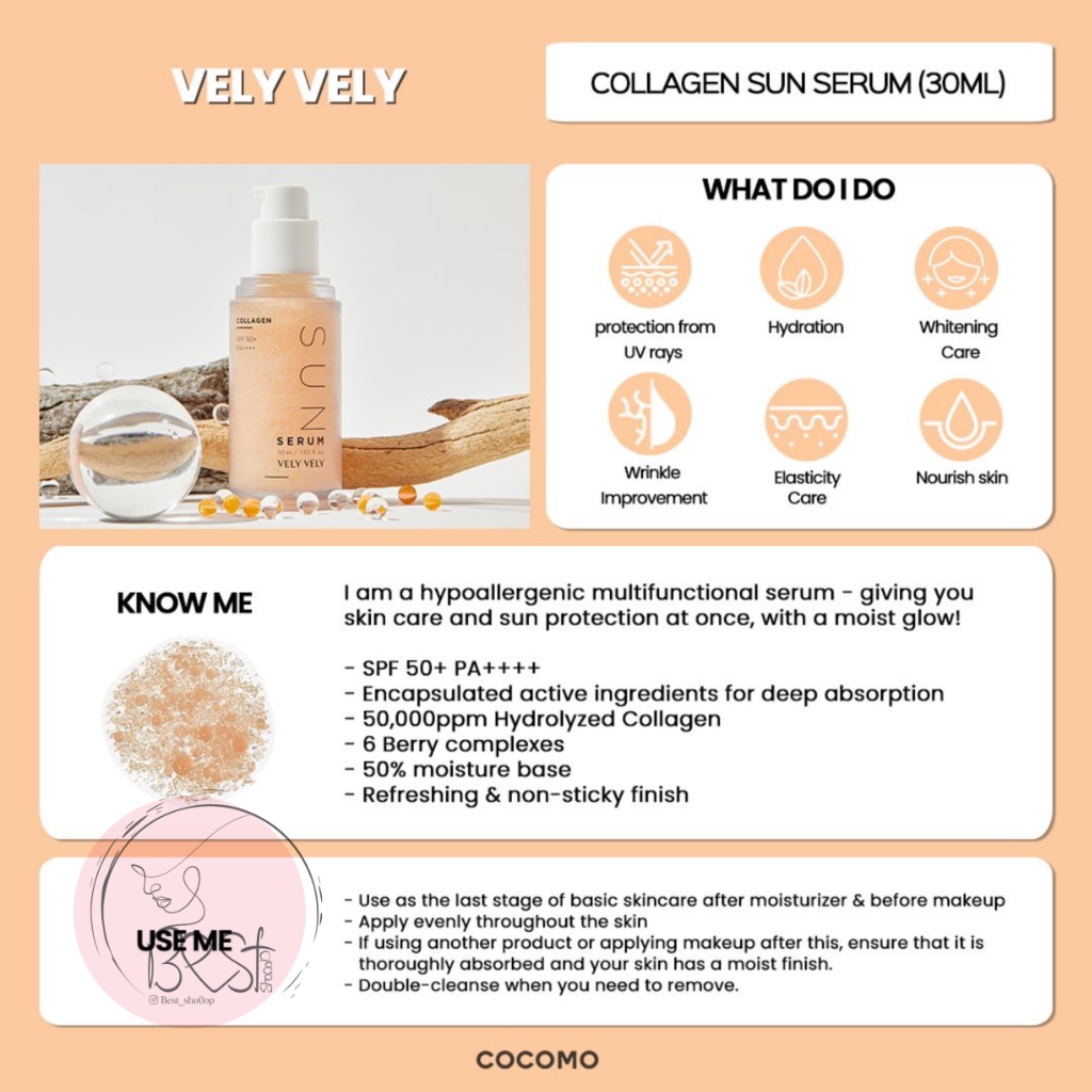[VELY VELY] Collagen Sun Serum SPF 50+ PA++++ 30ml ▪️ مواد اولیه فعال بصورت کپسوله شده در این محصول وجود دارند تا بیشترین تاثیرگذاری و جذب رو داشته باشن ✨